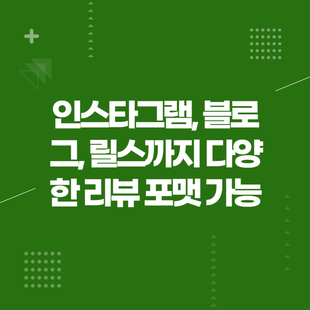인스타그램, 블로그, 릴스까지 다양한 리뷰 포맷 가능